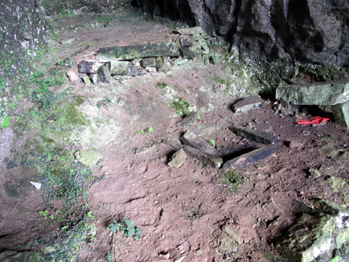 A stone stove and rest platform left in the cave
