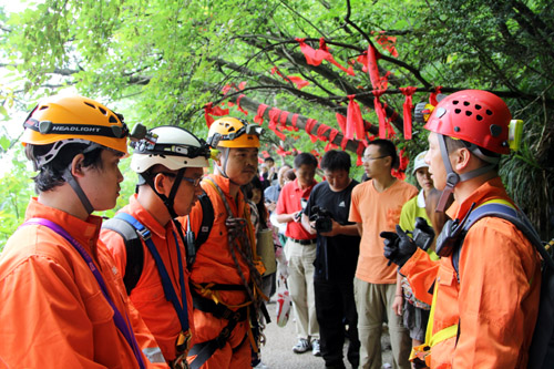After 18 hours of adventures, those brave adventurers come back to the ground safe and sound. What they have gained from this exploration will become the precious video materials for researching Tianmen Mountain and Geography of China Program.