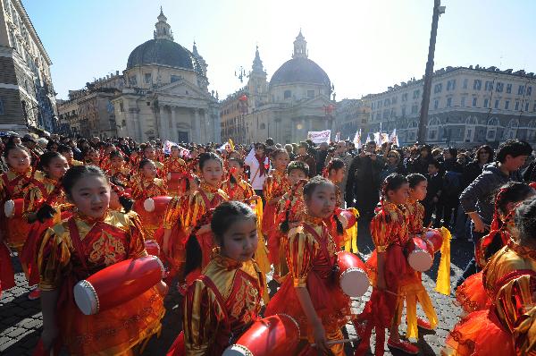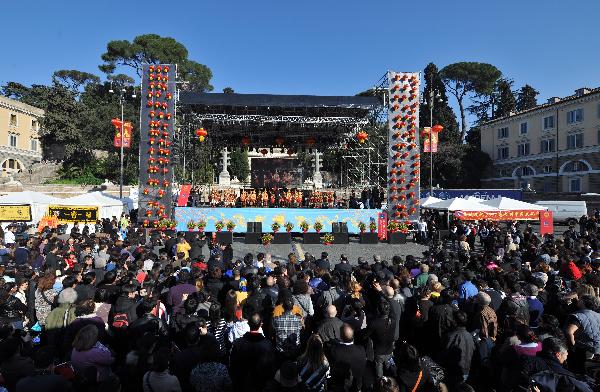 A Spring Festival Show, an event of the Chinese Cultural Year in Italy, is staged at the Auditorium Music Park in Rome, Italy, Feb. 5, 2011. The Chinese Culture Year in Italy climaxed as spectacular Spring Festival celebrations are being held across the country. (Xinhua/Wang Qingqin)