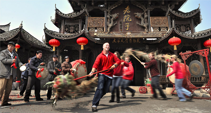 Foreigners enjoy the Lantern Festival in Zhangjiajie