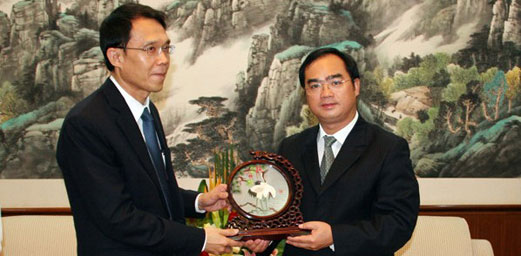 Xiao Xiangqing, director of the Foreign and Overseas Chinese Affairs Office of Hunan Province, met in Changsha with a delegation headed by Royal Thai Consulate-General in Kunming Vichit Chivimarn on July 4, 2011.
