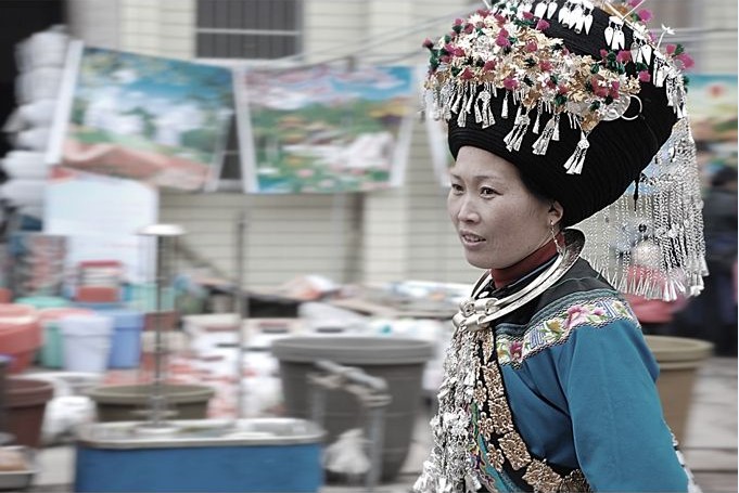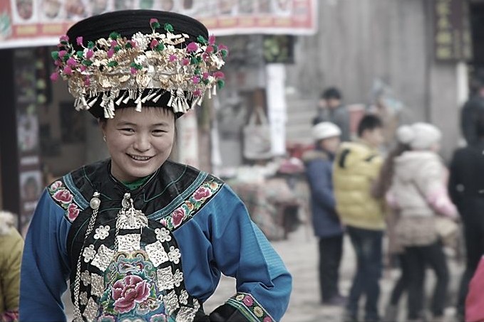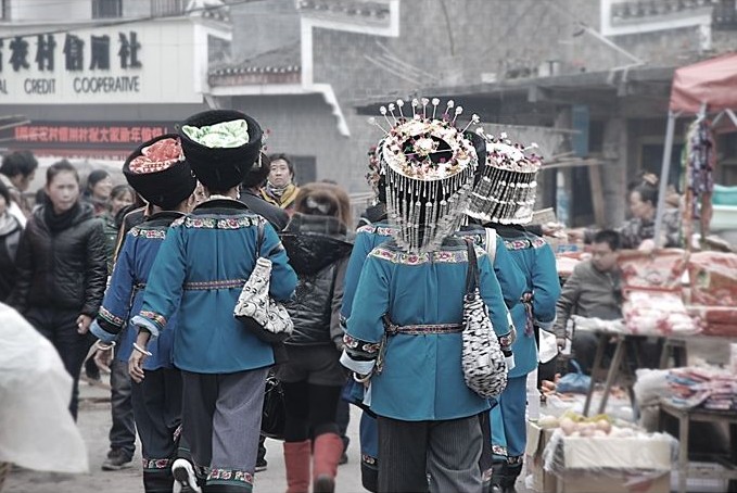 The third day of the first lunar month of Chinese calendar is the day that people in Sanjiang Town, Fenghuang, West of Xiang in Hunan get together and make a big market for shopping. On this day, the Miao Ethnic Women living around wearing their typical clothes come to the market, making a beautiful and special scenery in Sanjiang Town.(3Us Community)