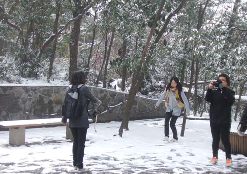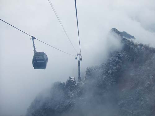 Tianmenshan 1518.6 meters above sea level, is the highest mountain in Zhangjiajie, Peak temperature of 6-8 degrees Celsius lower than in Zhangjiajie city, Only two seasons winter and spring in Tianmenshan. Tianmen Mountain is a good place to enjoy the cool air refreshing in the summer.Tianmenshan is a good place for Playing snow in the winter.Also, And Tianmenshan winter long, from late December to March the next year or even in April, full of snow and ice in the Tianmenshan Peak, Many visitors call Tianmenshan as “Beautiful NanFangXueGuo. “