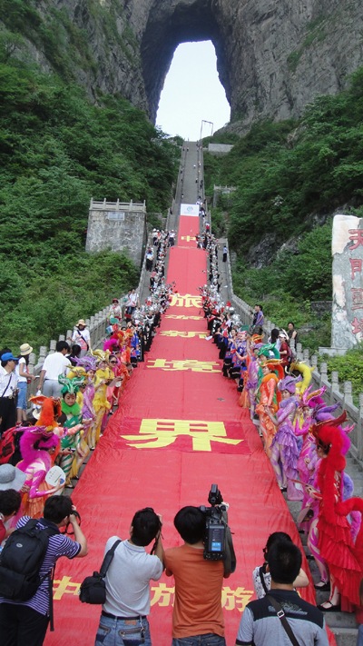 May 19, “Tianmen Fox Fairy” Zhangjiajie Tianmenshan scenic spot and visitors together to celebrate the first “China Tourism Day” Singing and dancing with them to promote the slogan of the China Tourism Day, Activities Finally, Tianmenshan scenic souvenir was presented to the tourists.