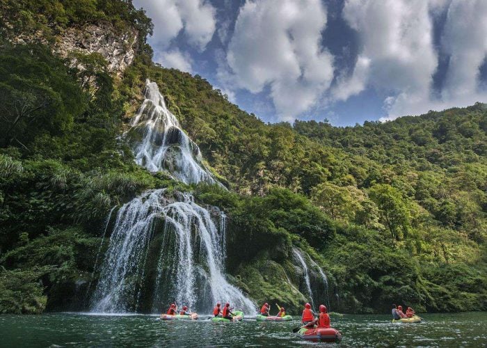 Yellow Dragon Cave: This cave is praised to be one of the most beautiful cave in china, It is just like an underground “magical palace”, featuring a wide cave, deep and secluded underground rivers, hanging waterfalls and dense stone bamboo shoots, showing a style of its own.