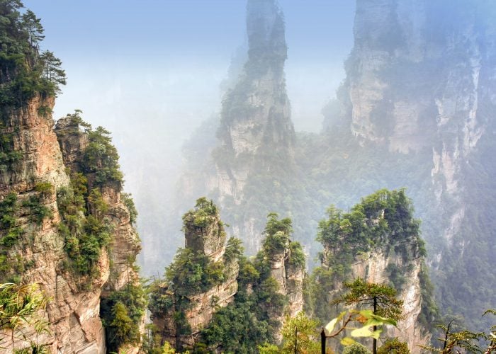 Tianzi Mountain: It is known for 4 natural spectacles – the clouds of mist that circle the peaks of the mountain, the amazing views of the rising sun, the moonlit nights and snowcapped winter peaks. They include more than 80 natural platforms to take in the magnificent scenery.