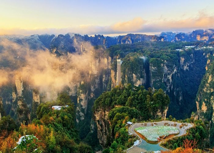 Tianzi Mountain: It is known for 4 natural spectacles – the clouds of mist that circle the peaks of the mountain, the amazing views of the rising sun, the moonlit nights and snowcapped winter peaks. They include more than 80 natural platforms to take in the magnificent scenery.