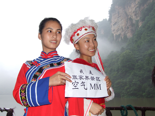 Wulingyuan Baofeng in Zhangjiajie scenic spot, there are two Tujia girls claimed: We are the Zhangjiajie scenic spot of the “Air Girl”. we, like Zhangjiajie as the air is clean, honest, warm and hospitable. We welcome friends all over the world to the World Natural Heritage of Zhangjiajie Wulingyuan breathing sweet, pure, fresh air.