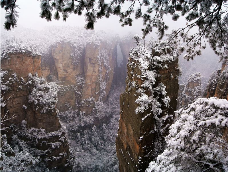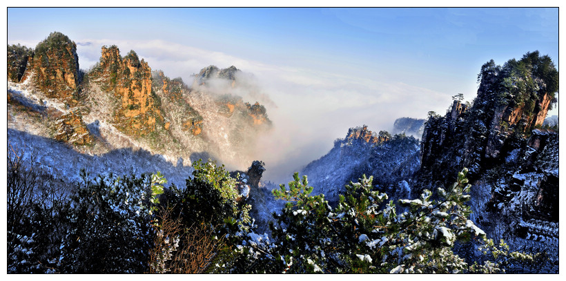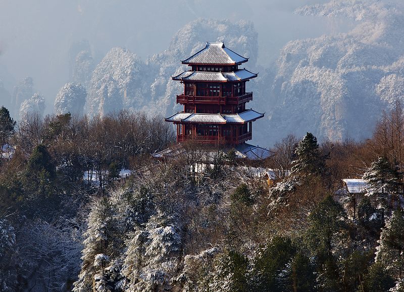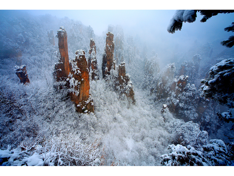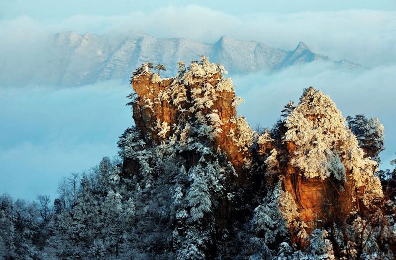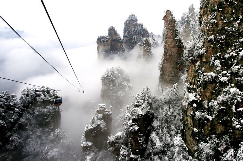 New Year beginning in 2011, Zhangjiajie has been the cold weather, there were numerous non-stop snow.World Natural Heritage of Zhangjiajie dress snow, very beautiful.Zhangjiajie snow everywhere, Crystal Worlds.Zhangjiajie like a beautiful fairy-tale world.Domestic and overseas tourists come here especially attracted by the beauty of Zhangjiajie, Enjoy the wonders of snow.