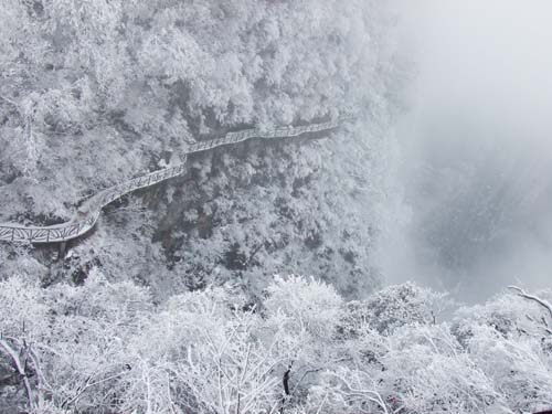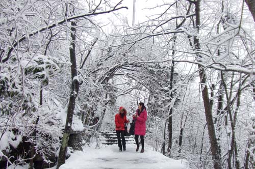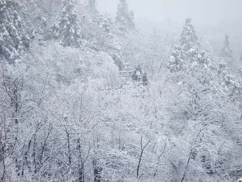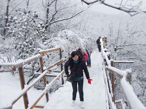 March 23,2011, once again usher in the spring snow in Tianmenshan top, this is the second time since the spring of this year,The forest is full of fairy tales in Zhangjiajie Tianmenshan.Visitors are attracted to Spring Snow.Zhangjiajie spring snow sent blessing for tourists.