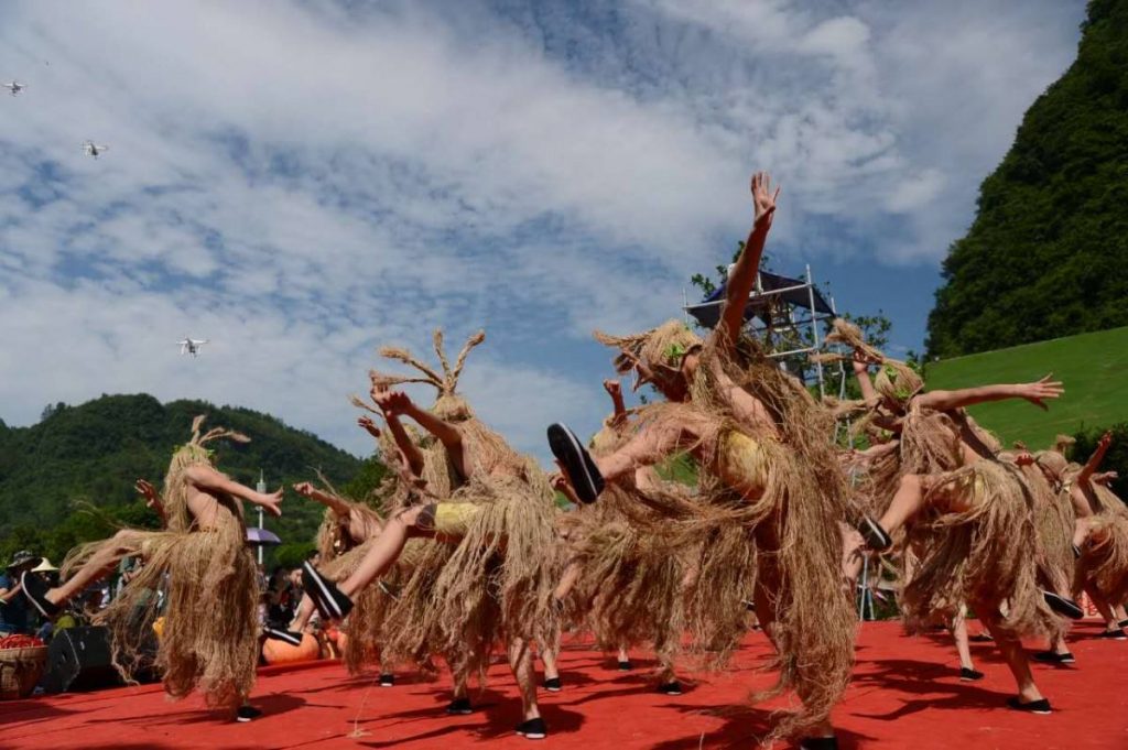 Mao Gu Si means men with a lot of fur in Tujia language. The dance originated from sacrifice ceremony of the ancient Tujia people. It’s the most primitive and roughest type of Tujia Dance. The experts thought it as a live fossil of Chinese operas. It reflects the ancient primitive lives of the Tujias: hunting, fishing, farming and so on. All players dress clothing made from straw.