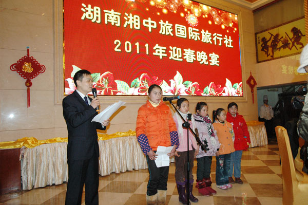 January 19, 2011 Spring Meeting held in Zhangjiajie Wantai Hotel.LIU Kui, Chairman made a summary report and work plan for 2011.Prizes awarded to outstanding workers.Poor children were invited to Meeting, and they sent a New Year’s blessing, to express a deep sense of love.